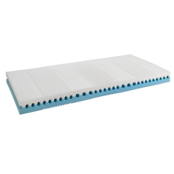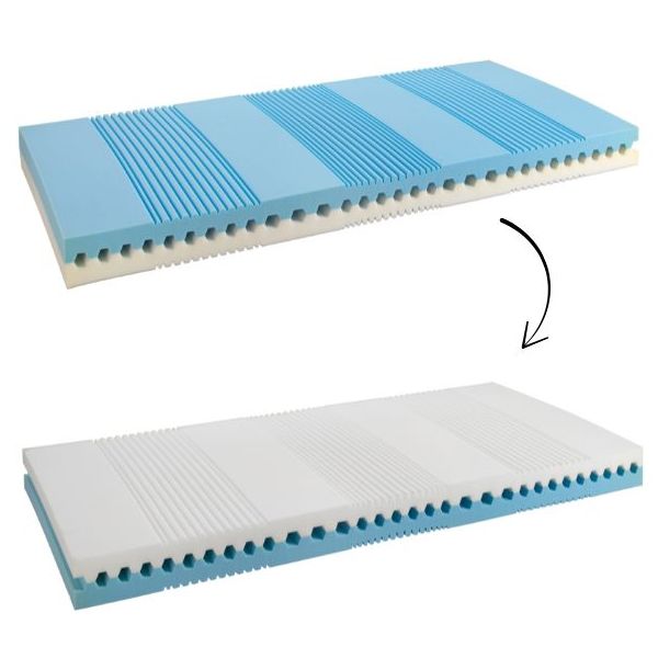 Kern: 7 Zonen, weiche Seite aus EvoPoreHRC-Schaum, feste Seite aus standardmässigem PUR-Polyetherschaum. Softlook-Finish, in 2 Teilen abnehmbar.